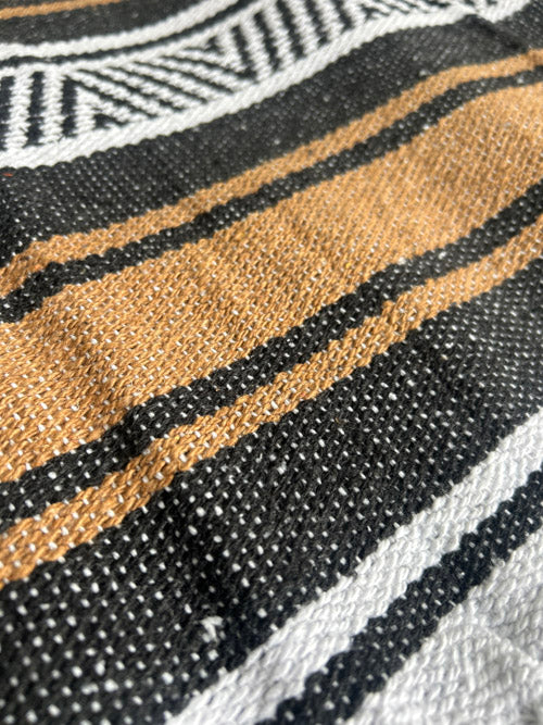 These Mexican Yoga Blankets are crafted with 60% cotton and 40% reclaimed fibres, creating a soft, durable, and sustainable prop for any yoga or meditation practice. Its woven texture provides reliable support in seated poses, restorative shapes, and gentle stretching. Use it as a bolster alternative, a knee cushion, or a grounding layer during savasana.