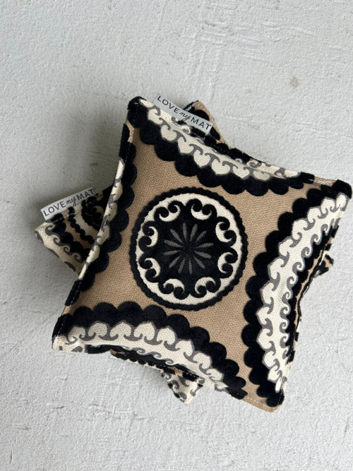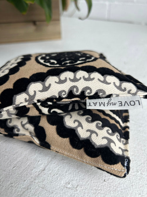 Our Yoga Knee Pillows are here to support you—literally. Thoughtfully filled with flax seeds and covered in soft, upcycled fabric, they provide just the right amount of cushioning for sensitive knees in any pose. Whether you're in tabletop, lunges, or seated positions, these knee pads will quickly become your go-to companion on the mat.