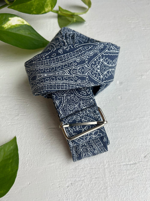 Made from an upcycled cotton, the blue Floral print or lattice design will look different on each strap.